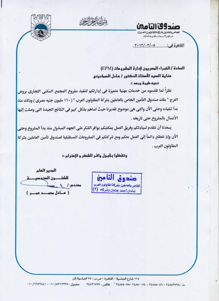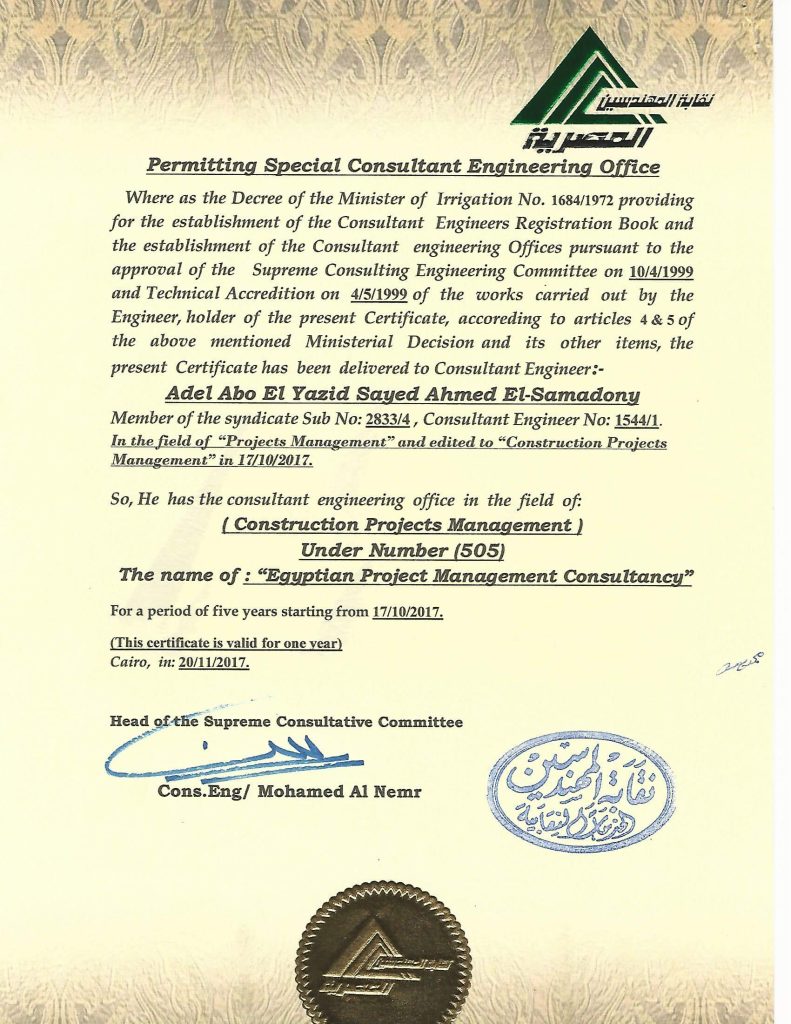 – EPM is the first Egyptian firm to be certified as a “Project Management Consultancy firm” by the Egyptian Syndicate of Engineers providing a full range and integrated project management services.